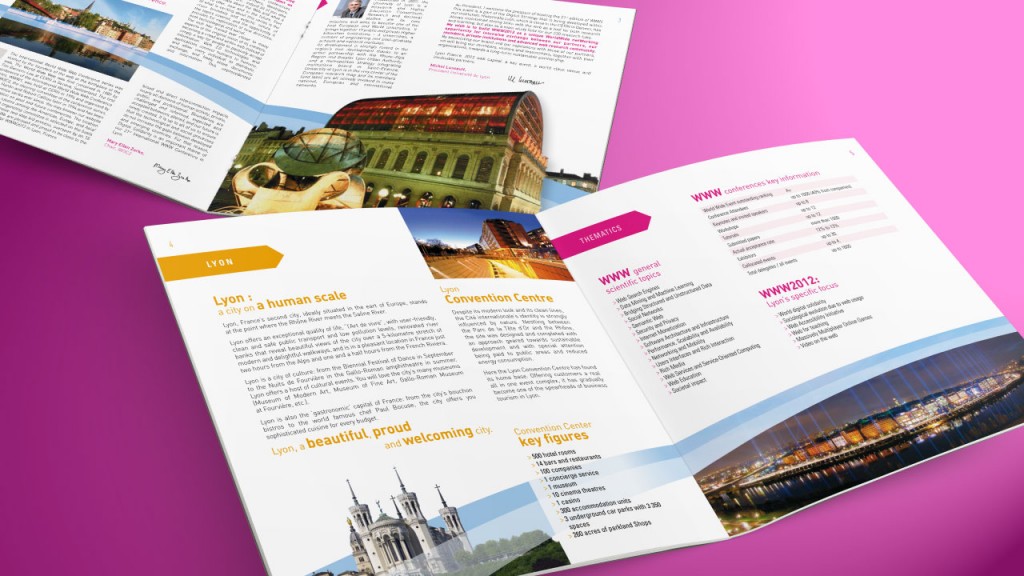 Plaquette événementielle de présentation de Lyon, ville hôte du congrès mondial du web, pour le W3C (World Wide Web Consortium)