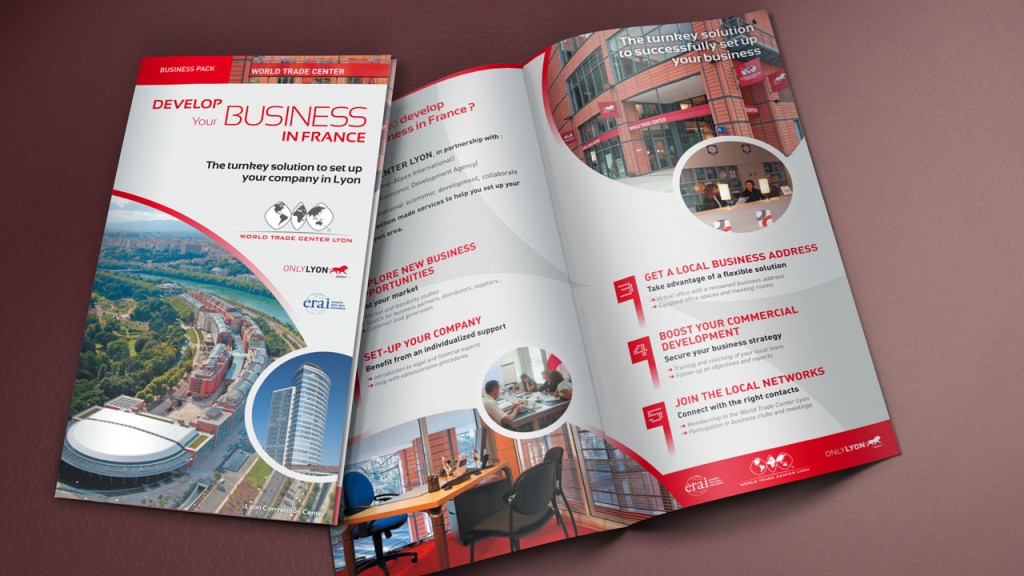 Plaquette de présentation du service d’aide à l’implantation des entreprises étrangères à Lyon du World Trade Center.